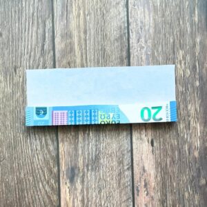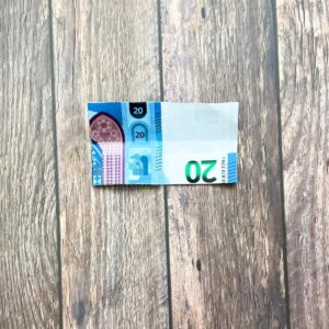 Falte den Geldschein je einmal längs in der Mitte nach vorn und dann nach hinten.Klappe die Falz wieder auf. Messe die Drittelabstände der langen Seite in der linken Hälfte Deines Geldscheins aus.