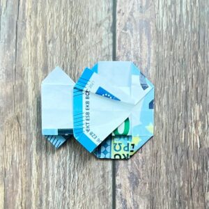 Falte die rechte Kante des Geldscheins an der zweiten Falz von rechts nach links um.