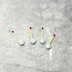 Klebe je einen Mini-Pompom unten an jedes Hölzchen.