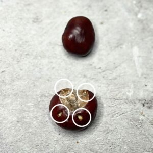 Suche Dir zwei Kastanien für den Kopf- und Körperteil aus, eine größere und eine kleinere.